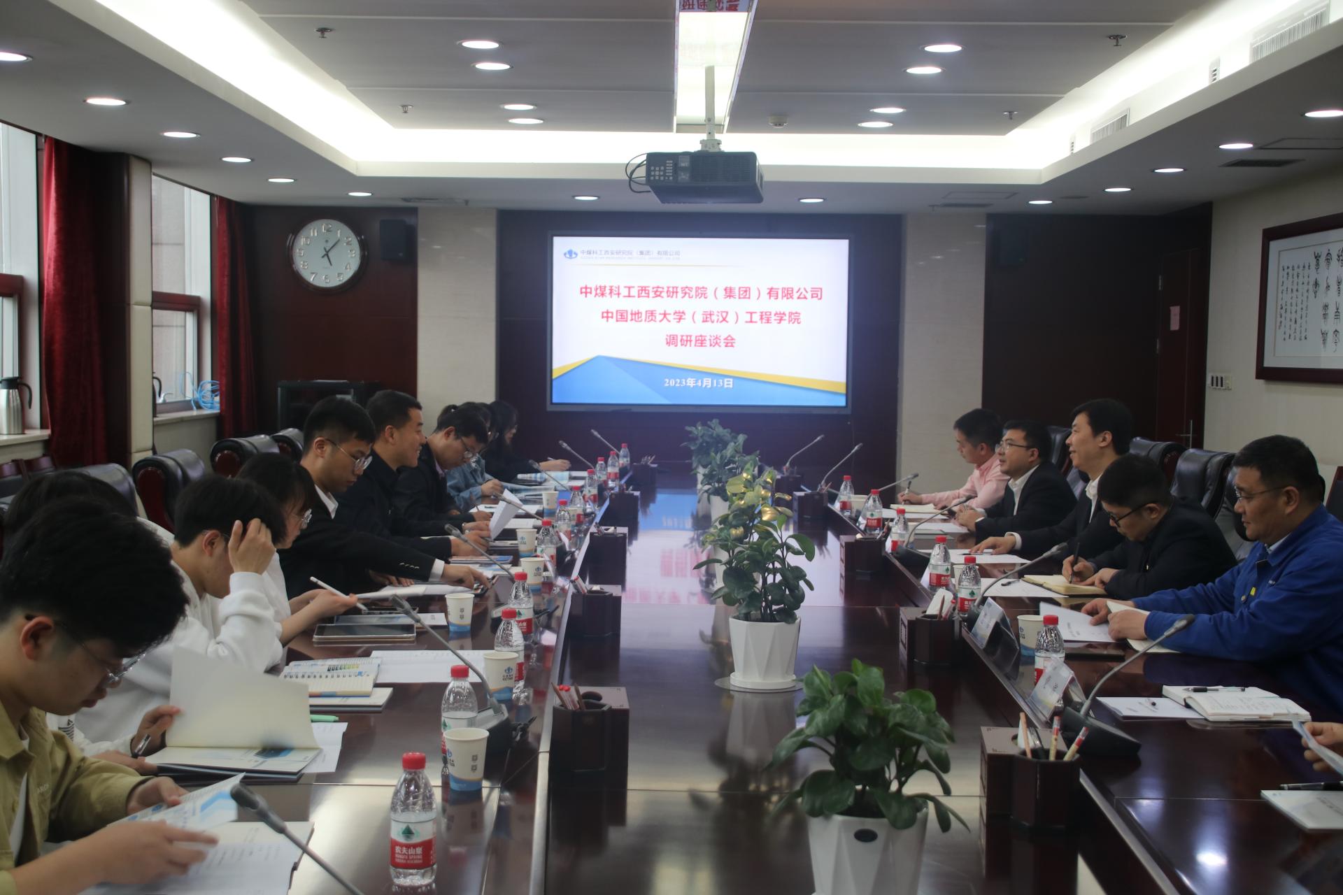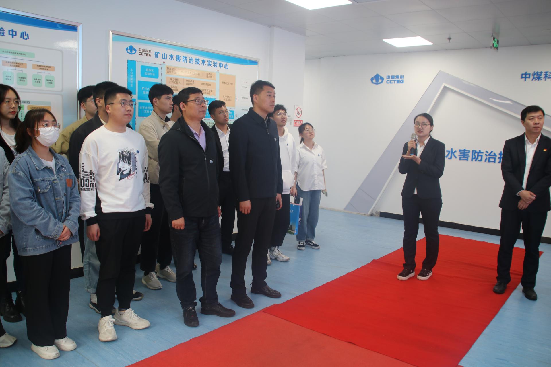 4月13日下午,细雨洗尘,微风清爽,师生们一行来到中煤科工集团西安研究院有限公司(以下简称“西安研究院”)访问调研。西安研究院党委委员、副总经理王皓、科技创新研究院副院长王晓东、生产管理部主任董萌萌、工程师方俊、生产管理部主管范伟、人力资源部主管党滨陪同参观座谈。